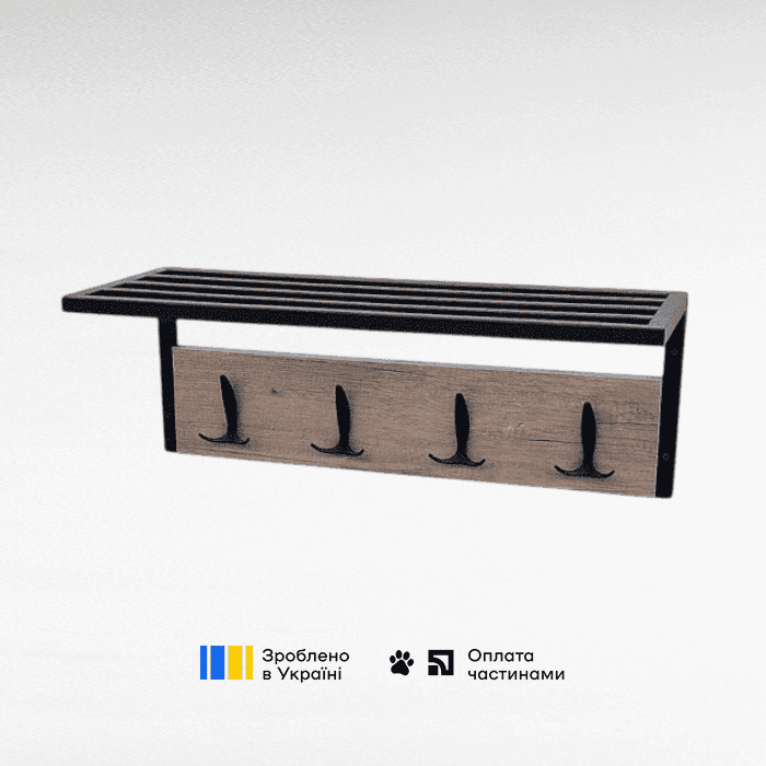 Легкий метало-дерев’яний вішак з поличкою.
